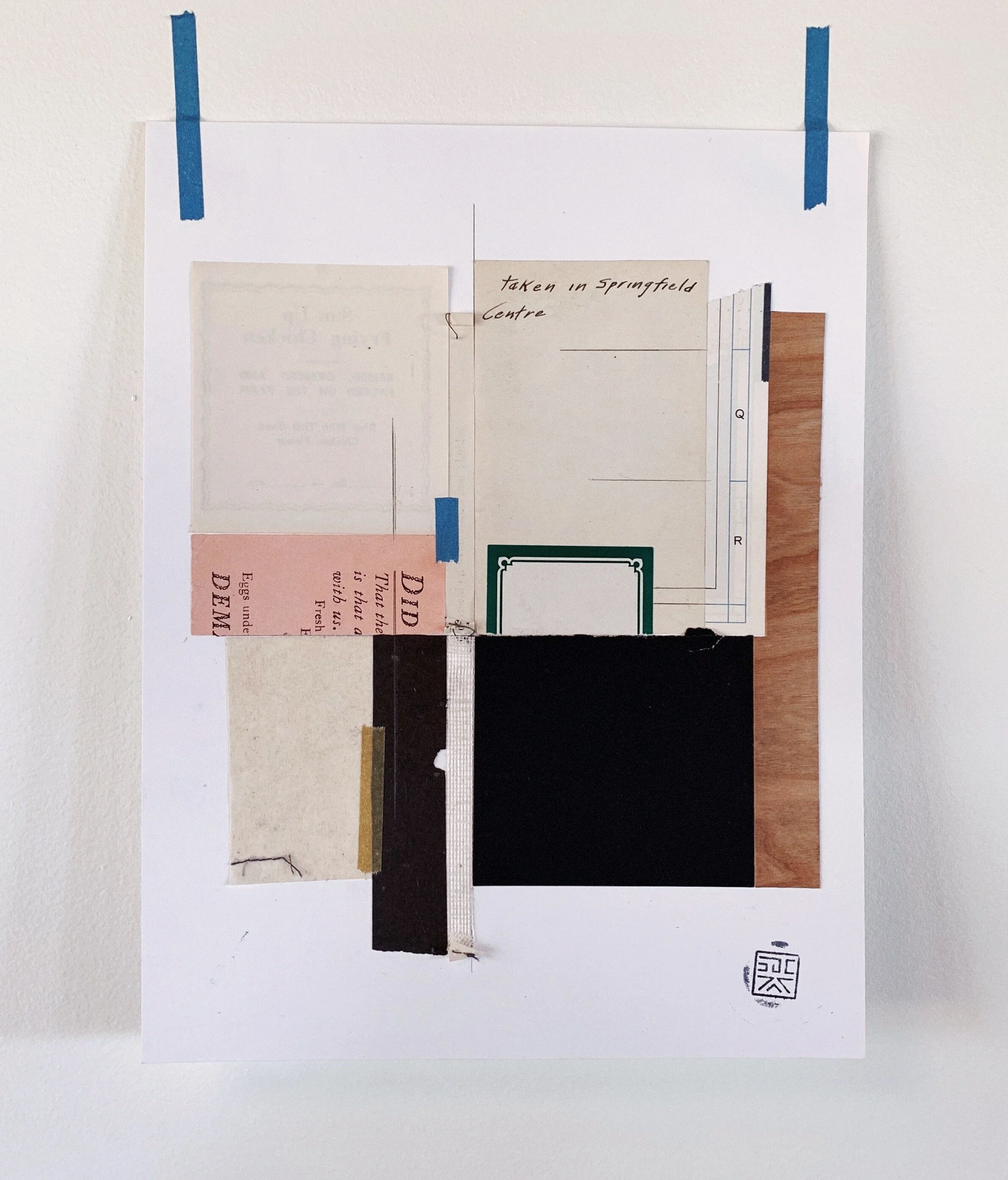 II, 8.5” x 11”—found paper, wood veneer, thread, washi tape, graphite